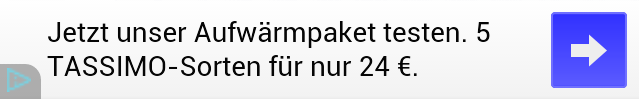 Bei dem 320×50 Mobile Banner sorgte der wegfallende Pfeil tatsächlich für einen Klickrateneinbruch um 2/3 – dies konnte überprüft werden, indem testweise eine andere AdSense-ID verwendet wurde und schwupps war der Pfeil wieder da und die Klickrate auf altem Niveau.